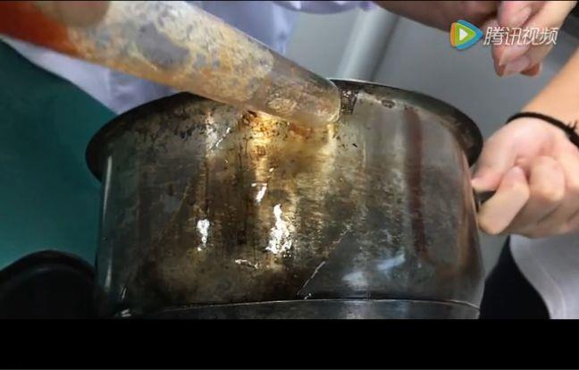 配方:洗洁精、番茄酱、水(1:2:3),将洗洁精、番茄酱、水以1:2:3的比例混合、搅匀后,倒在锅具表面污垢处。